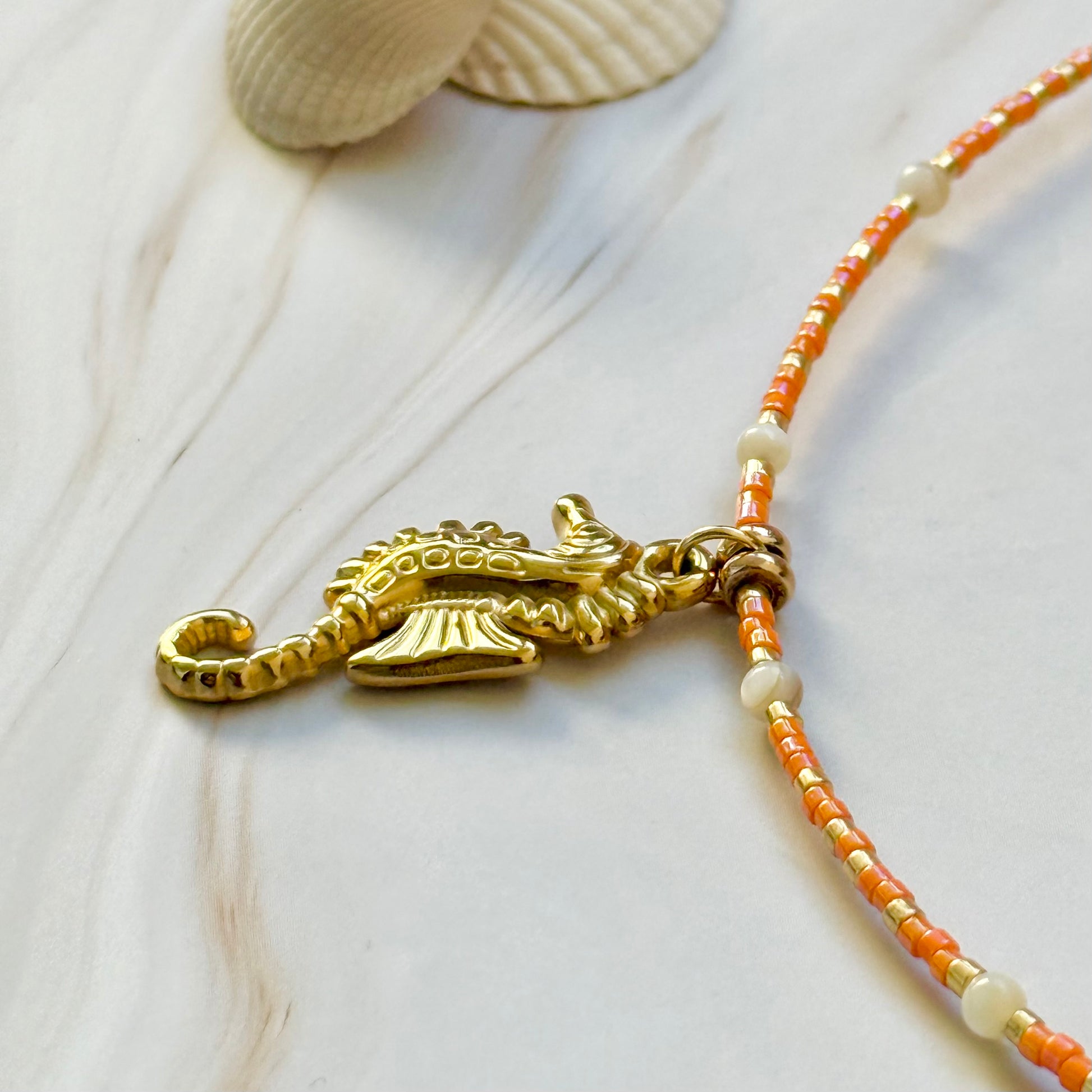 - Perles : perles Miyuki orange nacré et blanches, associées à une perle coquillage naturelle