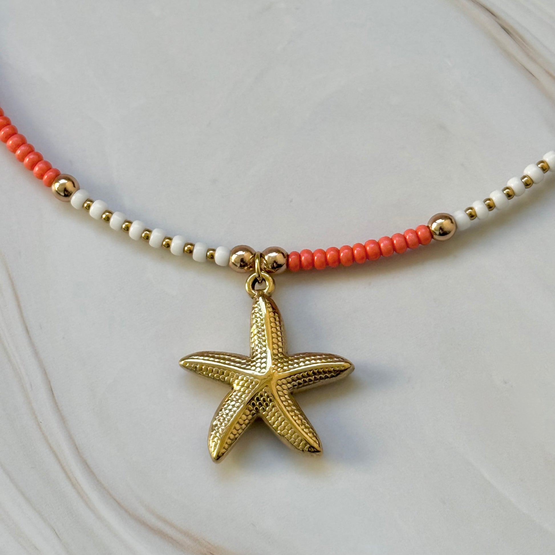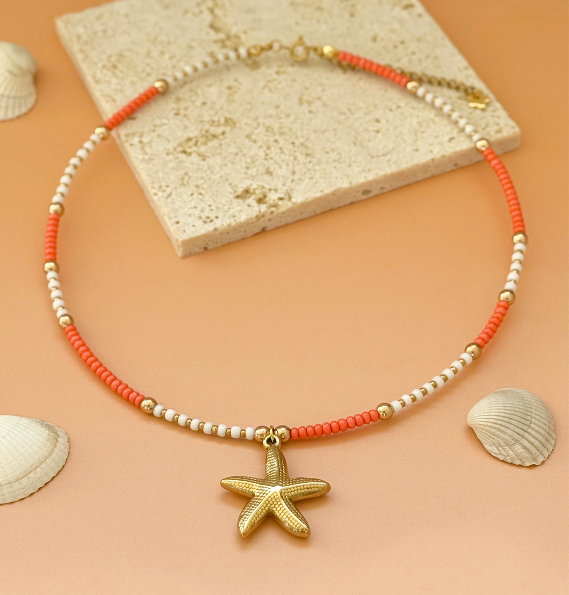 - Perles : orange nacré, blanches et dorées, rappelant les trésors marins
